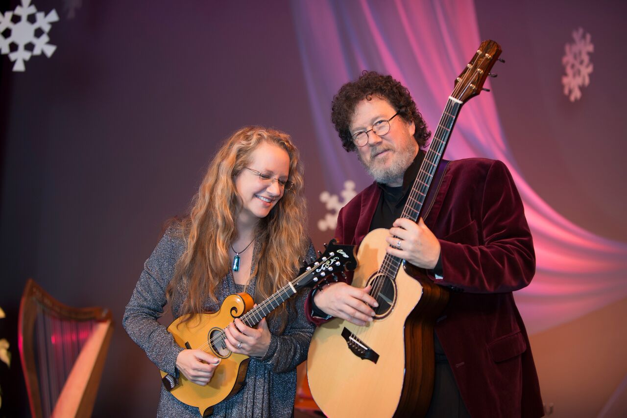 Grammy winner Al Petteway and his wife and musical partner Amy White perform an exciting blend of original, traditional, contemporary Celtic- and Appalachian-influenced music. Their repertoire offers extensive instrumental work featuring acoustic guitars, mandolins, Celtic harp, piano, and world percussion as well as a fine touch of vocals. They have been Artists in Residence at Warren Wilson College and The Kennedy Center Millennium Stage. Their award-winning signature sound is heard often on public radio programs and has been used in the soundtracks for a number of Ken Burns’ films, most notably the Emmy-winning PBS documentary, The National Parks-America’s Best Idea. While living in the Washington, D.C. area, Al & Amy won a grand total of 50 Wammies from the Washington Area Music Association in the Folk, Celtic and New Age categories. They received a coveted Indie Award for their CD Gratitude (2001) and Al won a Grammy for his solo fingerstyle guitar rendition of Henry Mancini’s The Thornbirds Theme featured on the pop instrumental compilation, Pink Guitar (2004). The readers of Acoustic Guitar magazine voted him one of the top fifty guitarists of all time. Al is the coordinator of Guitar Week for the world famous Swannanoa Gathering at Warren Wilson College, and was given the “Master Music Maker” award for his contributions to the program in 2013. Amy’s 2012 release, Home Sweet Home, was in the top ten on the national folk/roots charts and held the number one spot in North Carolina for more than a month in 2012. Al’s 2014 release, Mountain Guitar, features solo acoustic guitar and paints a musical portrait of the southern Appalachian Mountains. Al and Amy are both stock photographers with National Geographic Creative, and their photographs are represented in The National Geographic Society’s Image Collection, where Al worked as an image editor for 18 years. These photos are translated onstage during A Swannanoa Solstice in photographic backdrops of the Southern Appalachians in winter repose. Al and Amy make their home on top of the Elk Mountains range in nearby Weaverville, NC.