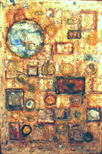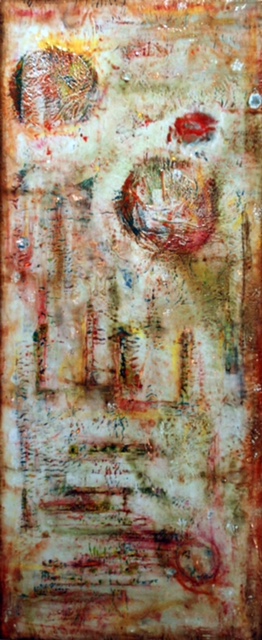 Hamilton’s exhibit uses textural capabilities of encaustics to give meaning to abstraction. “My goal was to explore a painting theme on macroscopic and microscopic levels. Each piece in my Elements series shows a different landscape of vibrant color and rich texture. The relationship between major elements in each piece seen from a distance, is similar to the effect of seeing a geological formation from a bird’s eye view. When investigated more closely, these pieces reveal a depth of detail down to the most minute level, which is meant to encourage interest and inquiry.”