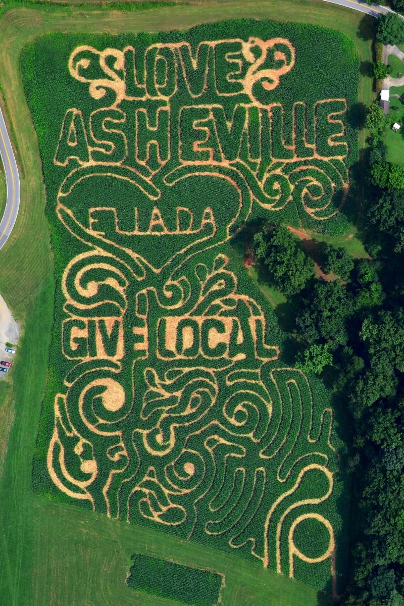 Asheville Grown Business Alliance & the Corn Maze This year, Eliada is partnering with the Asheville Grown Business Alliance to create a “Love Asheville Give Local” theme in the maze. A giant heart, with this familiar slogan creates the maze trails and celebrates Eliada as a local charity in the region. The Asheville Grown Business Alliance’s mission is to support independent owned businesses in the community. “Local Independent Businesses cycle 3 times more money back in to the local economy and give greater support to a community’s non-profit and civic needs” (http://ashevillegrown.com/). Eliada is proud to partner with Asheville Grown to highlight our local roots and promote other local businesses and non-profits in our region.