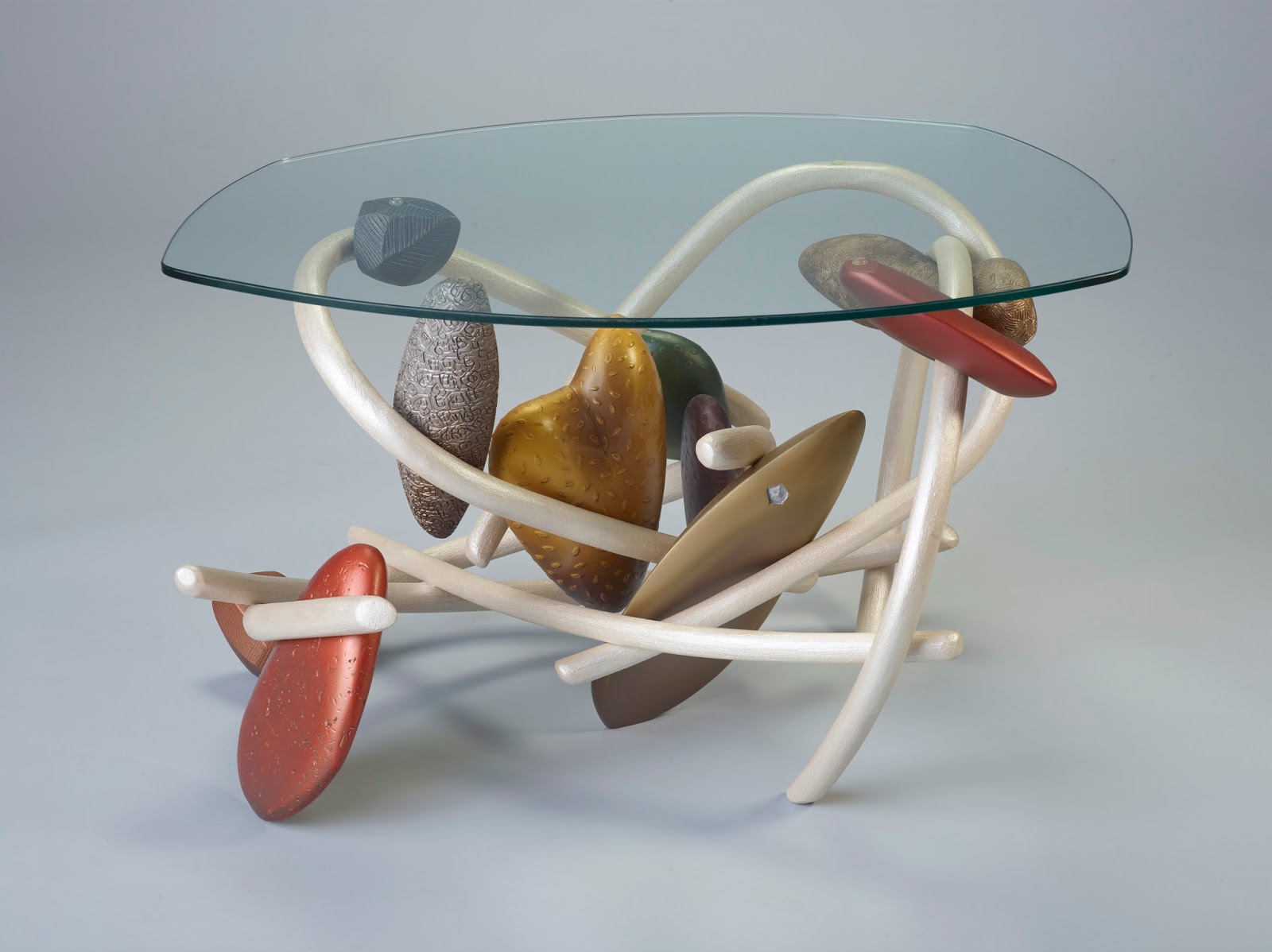 Asheville artist Brent Skidmore will be demonstrating some of his carving and textural surfaces on a mirror frame and boulder forms on Friday during the benefit from 12 – 4pm. Brent serves as Assistant Professor of Art and Director of Craft Studies at UNC Asheville and is a former board member of the CCCD (2007 – 2015). He has taught at many esteemed craft schools across the country, including Anderson Ranch Arts Center, Arrowmont School of Arts, and Penland School of Crafts. His work and processes are included in a recent Lark Publication entitled “The Penland Book of Woodworking.” Exhibitions of Brent’s personal work have included the Smithsonian Craft Show and SOFA-Chicago.
