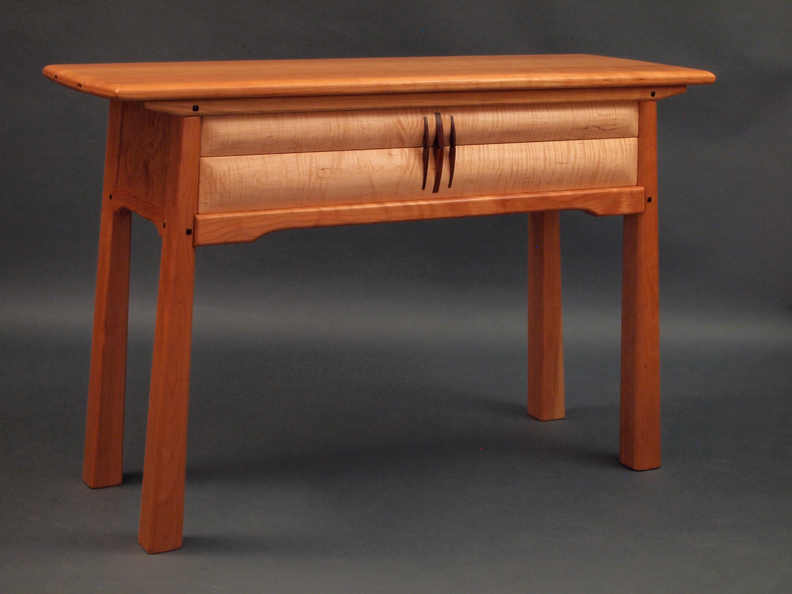 A craftsman for 45 years, Gauthier creates work that incorporates his own vision and style with other details often seen in Arts and Crafts and Greene and Greene furniture. He enjoys working with native Kansas hardwoods (primarily maple, cherry and walnut) and occasionally incorporates ceramic tiles into his pieces, a throwback to his previous life as a ceramicist. All furniture is designed for everyday use and handcrafted in Gauthier’s Kansas studio.
