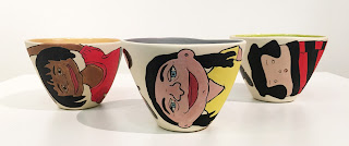 Grovewood studio artist Helen Purdum will be sharing her inspired techniques of surface design on bisque fired bowls and cups, focusing on the delightful, colorful caricatures of her “Girlfriends Series.”
