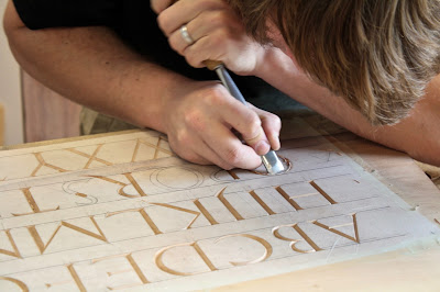 Clark Kellogg is an artist from Houston, Texas who specializes in letter carving in wood. Letter carving has a long and rich history, but sadly today it is an almost forgotten art. Cutting letters by hand is a demanding process requiring skill and patience, but there is simply no substitute for the results that can be accomplished using a mallet, chisel, and gouge – there is a crispness and a subtlety that cannot be matched by machine. Kellogg studied letter carving under master carver Chris Pye and has been carving letters on commission and spec ever since. Some past lettering projects have included house numbers, dedications, awards, and signs. His work has appeared in Fine Woodworking, Woodworker West, and Letter Arts Review.