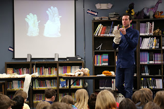 Carolina Day School Kindergarten through seventh grade students got a glimpse into what it’s like to be an astronaut with NASA’s Shane McFarland. McFarland is a project engineer for NASA’s Johnson Space Center on spacesuit and spacesuit technology development. He gave an interactive presentation about some of the projects he is working on, including a revolutionary space suit to be used to send an astronaut to Mars. Students got to hold pieces of space suits, from gloves, boots, to hydration pouches. All pieces of hardware came from suits either used for testing or sent up to space. With each item he passed around, McFarland pointed out in pictures where the piece comes from on the actual space suit.