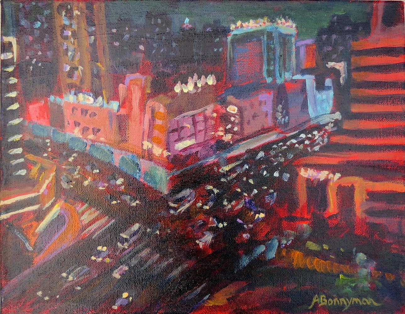 Anne Bonnyman paints natural and urban landscapes using oils and acrylics. She has lived in the Southeastern US, the Mid-Atlantic, and New England, where she says she has “discovered new landscapes to celebrate through color on canvas.” She now lives in Asheville and continues to explore the worlds of light, line, and color, as well as the narrative possibilities for painting from contemporary images and experience.