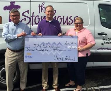 United Federal Credit Union (UFCU) was pleased to make a recent $700 donation to the Storehouse in Hendersonville, North Carolina. The Storehouse provides food and hygiene products to people with limited financial resources and, often, limited life skills in Henderson County.